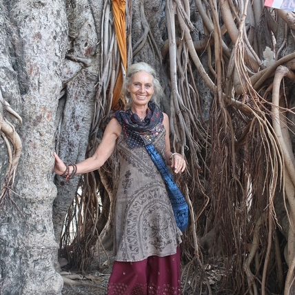 Ich bin Usha Hughes, 65 Jahre alt, pensionierte Kunsthandwerkslehrerin. Nach einer sechsmonatigen Indienreise, vor allem im armen Bundesland Bihar, möchte ich den Menschen vor Ort helfen. Deshalb starte ich bei Veranstaltungen eine Secondhand-Verkaufsaktion mit Artikeln zu „Indien“ und „Yoga“.