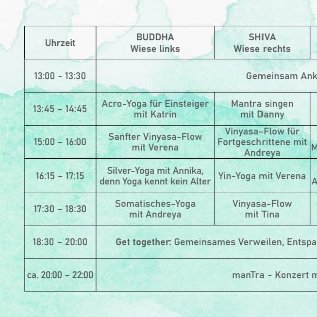 Eintritt regulär: Yoga-Tag mit Yogaworkshops und Konzert (Euro 50,-)